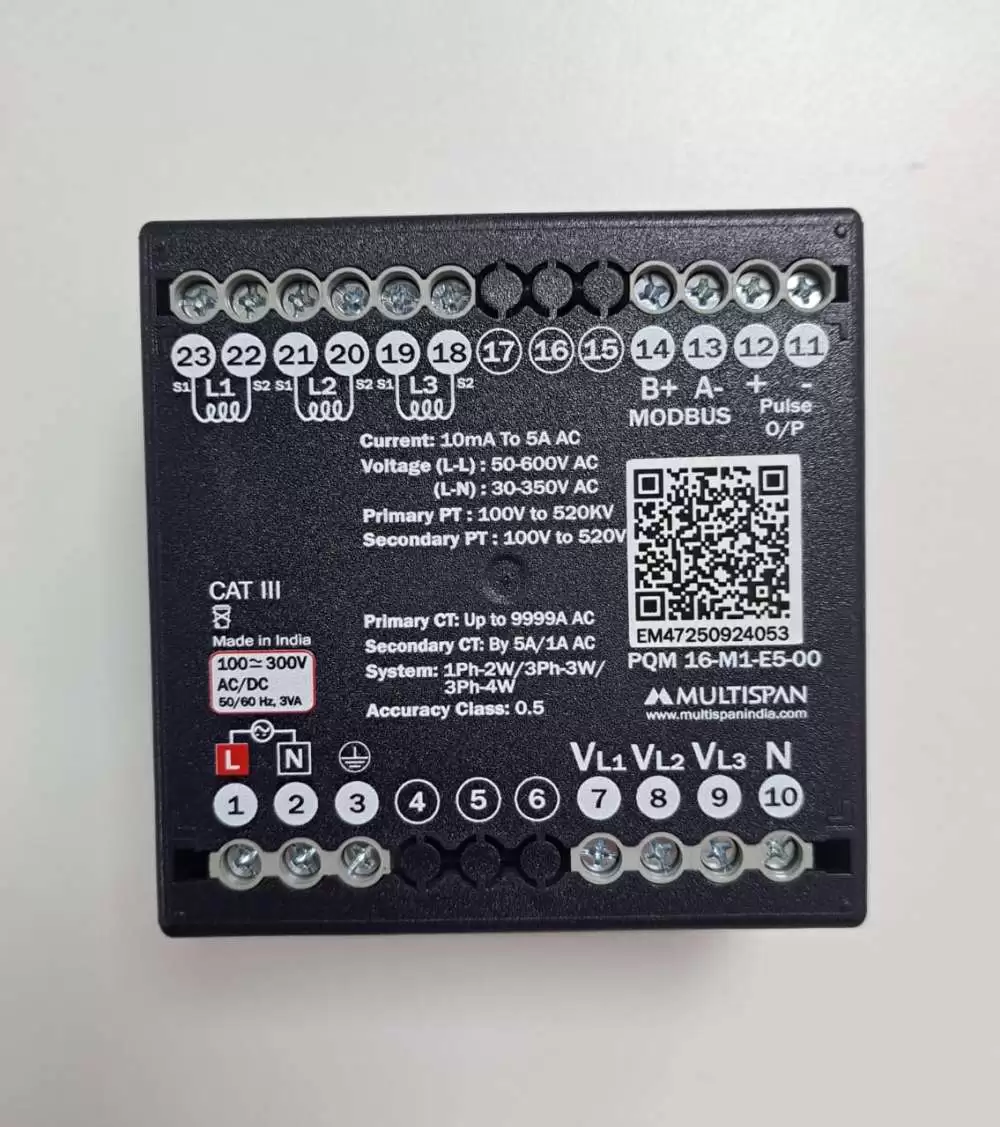MULTISPAN, POWER QUALITY METER, LCD DISPLAY, CLASS 0.5, 98x98mm, PT SEC.: 100-520V L-L, CT SEC.: 1A/5A, AUXILIARY SUPPLY: 100-300V AC/DC, WITH RS-485 AND PULSE OUTPUT, PQM 16-M1-E5-00