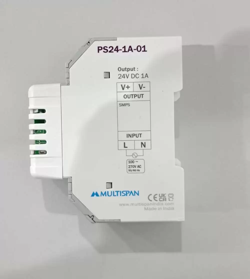 MULTISPAN, POWER SUPPLY, DIN RAIL MOUNT, 24W, VOLTAGE I/P: 100-270V AC, 50/60Hz, VOLTAGE O/P: 24V DC, 1A, PS24-1A, PS24-1A-01