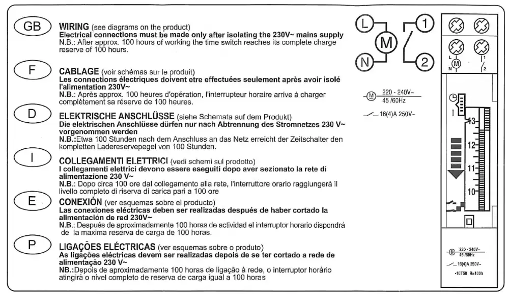 - Charge reserve approx 150 h max (max 100 h mod. 0171)