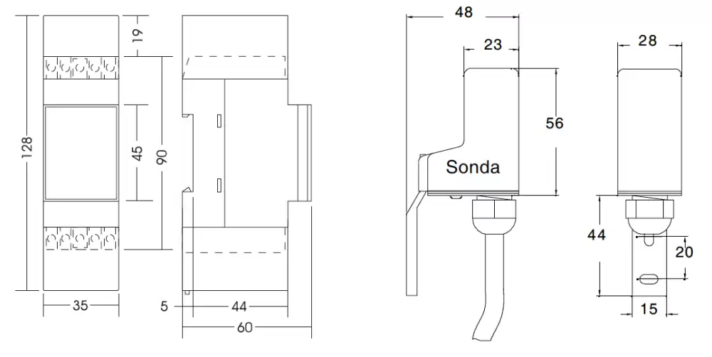 - Dimensions DIN (L x W x H) 35 x 60 x 90 mm