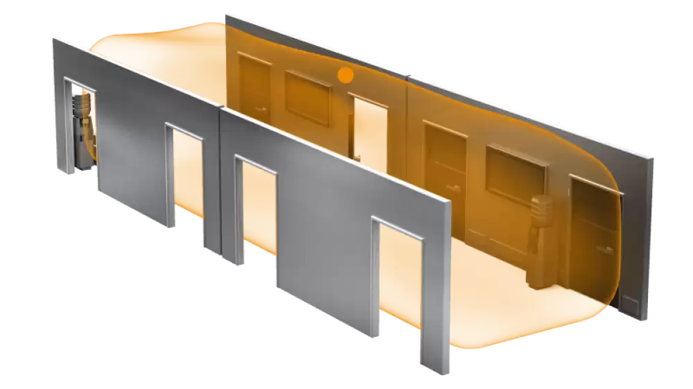 The better hallway sensor knows more. Movement vector (coming and going) as well as if someone is on the left or the right. And this with a detection zone of 25 m. Naturally, its reach can also be adjusted in both directions. It provides more information than any other hallway sensor. Bluetooth technology ensures that the Hallway can be configured and interconnected into existing networks conveniently. And the distinguished design makes it an important member of the true presence® family.