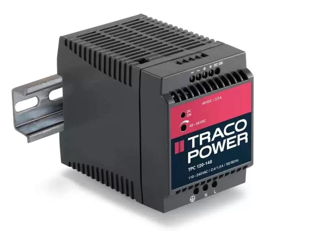 TRACO POWER, POWER SUPPLY, 120W, DIN RAIL MOUNT, VOLTAGE I/P: 85-264V AC, OUTPUT: 24V DC, 5A, TPC 120-124