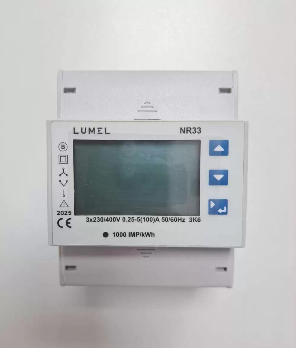 LUMEL, ENERGY METER, 3 PHASE, DIN RAIL MOUNT, DIRECT CONNECTED 100A, VOLTAGE I/P: 400V L-L, SELF POWERED, WITH RS485, 2 PULSE OUTPUTS, 2 DIGITAL INPUTS, OLD NMID30-2, NR33 M0