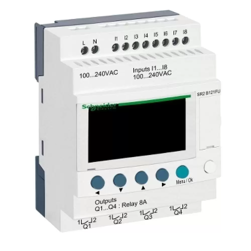 SCHNEIDER ELECTRIC, COMPACT SMART RELAY, ZELIO LOGIC, 12 I/Os, SUPPLY VOLTAGE 100-240V AC, 50/60 Hz, IP 40 FRONT PANEL, SR2B121FU
