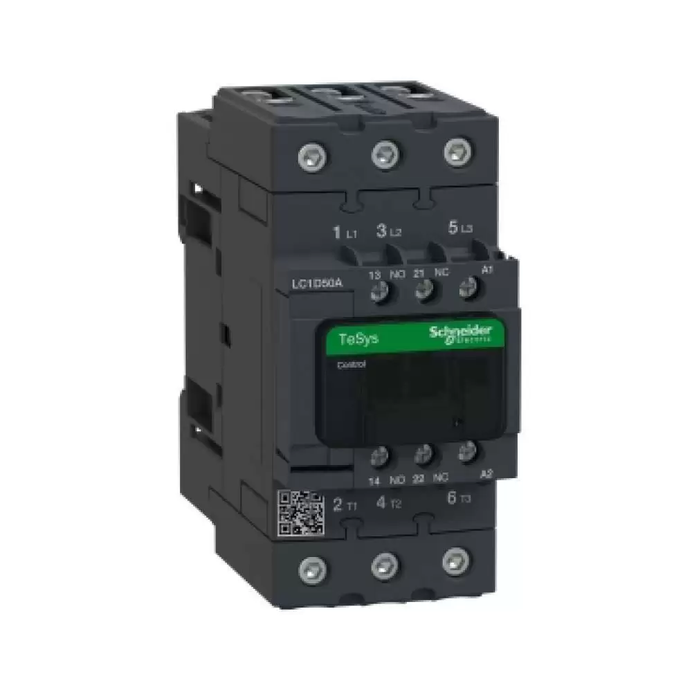 SCHNEIDER ELECTRIC, CONTACTOR, TeSys Deca, 3P, POLE CONTACT 3NO, 50A, AUXILIARY CONTACT 1NO+1NC, COIL VOLTAGE 220V AC, 50/60 Hz, LC1D50AM7