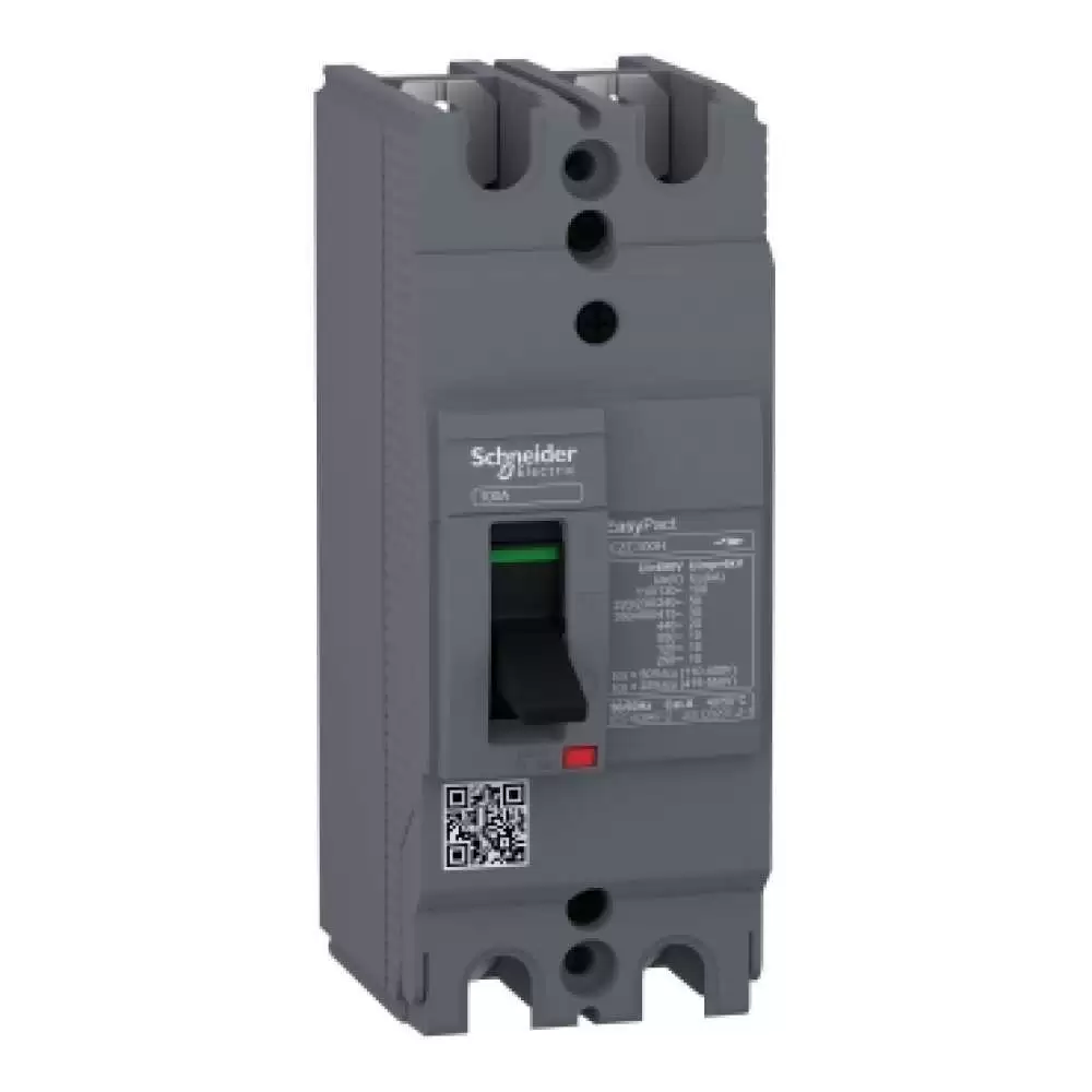 SCHNEIDER ELECTRIC, MCCB, EasyPact, EZC100H, 2P, 16A, 10kA, 550V AC, 50/60 Hz, IP 20, EZC100H2016