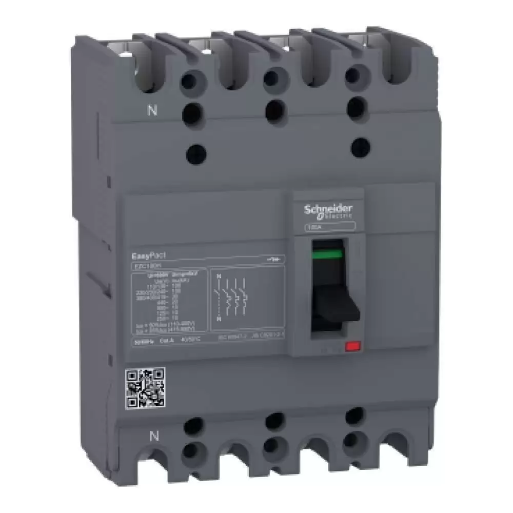 SCHNEIDER ELECTRIC, MCCB, EasyPact, EZC100H, 4P, 63A, 10kA, 550V AC, 50/60 Hz, EZC100H4063
