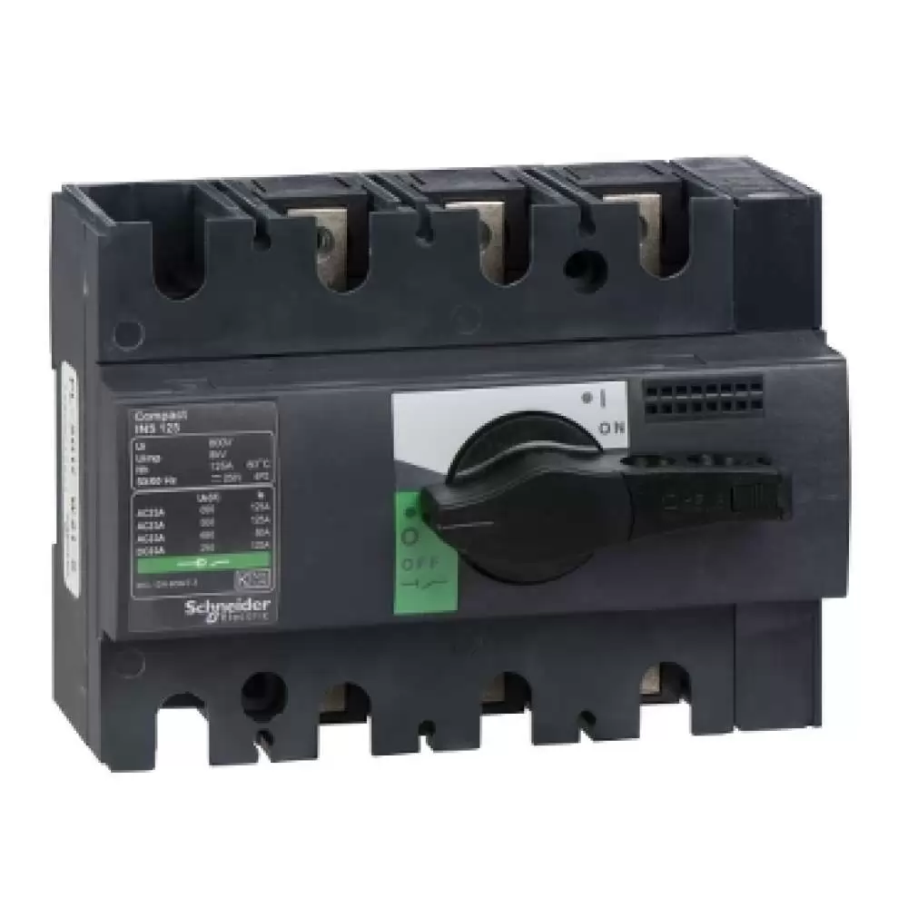 SCHNEIDER ELECTRIC, SWITCH DISCONNECTOR, Compact INS125, 125A, 3P, 690V AC, 50/60 Hz, IP 40, 28910