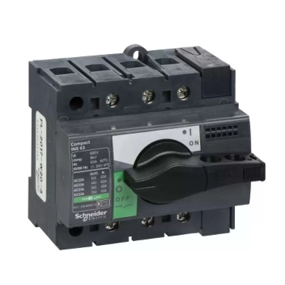 SCHNEIDER ELECTRIC, SWITCH DISCONNECTOR, Compact INS63, 63A, 3P, 690V AC, 50/60 Hz, IP 40, 28902